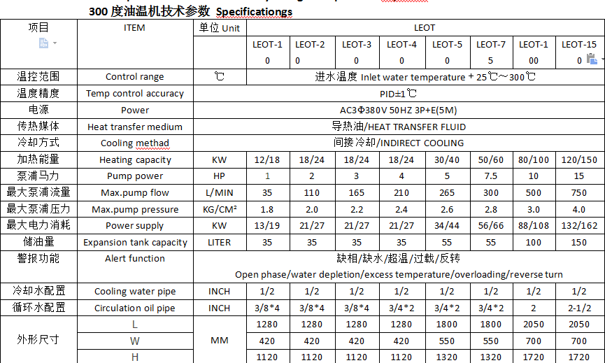 LDDC油溫機屬于高溫油溫機系列,由于采用更先進的控制工藝以及配件,機組的控制溫度可以達到350℃,可以被應(yīng)用在眾多工業(yè)設(shè)備控溫場合,例如橡膠硫化、烘房控溫、模具控溫、輥輪控溫、發(fā)泡控溫等。加熱功率3KW-1200KW可選擇,在選擇油溫機時主要依據(jù)加熱功率,泵浦性能,冷卻能力這幾方面來進行考,在選購時,盡量提供詳細的工藝情況給生產(chǎn)廠家,根據(jù)需要實際生產(chǎn)工藝來確定加熱功率及泵浦功率,,避免油溫機出現(xiàn)功率過大或不足的現(xiàn)象產(chǎn)生。